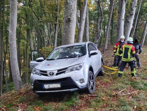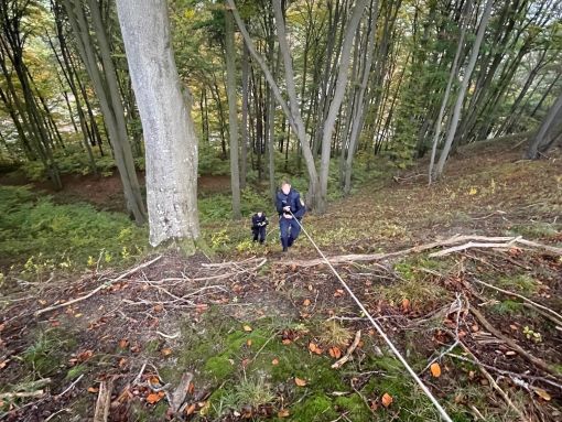 Ca. 30 m unterhalb des Fahrzeugs, im steilen Abhang, fand man den Senior unterkühlt im Wald liegen.