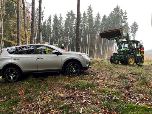 Es wurde gegen weiteres Abrutschen gesichert, und dann mit einem Traktor aus dem Wald gezogen.