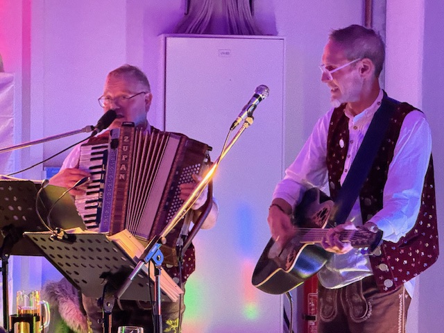 Bereits beim Betreten der Halle fiel die liebevolle Gestaltung auf: farbige Beleuchtung, herbstliche Dekoration und gemütliche Sitzgelegenheiten sorgten für eine warme, einladende Atmosphäre. Für die musikalische Unterhaltung sorgten Siggi und Joachim, die mit ihrer Live-Musik das Publikum begeisterten und für beste Stimmung sorgten.